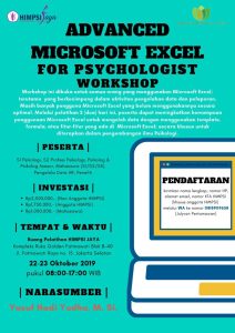 HIMPSI JAYA akan mengadakan workshop “Advance Microsoft Excel for Psychologist” yang dikelola oleh koperasi Harjaya Jiwangga Utama.